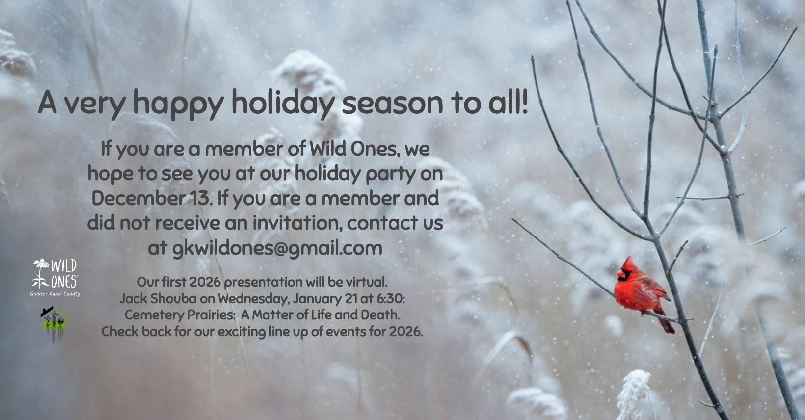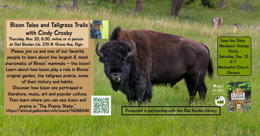 The Greater Kane County Illinois Chapter of Wild Ones was founded in 2009 as a chapter of Wild Ones. We are committed to promoting the use of native plants in landscaping, gardening, naturescaping and land restoration. In April, 2021, we changed our name to from Northern Kane County Wild Ones to Greater Kane County Wild Ones. Wild Ones is a not-for-profit environmental education and advocacy organization.